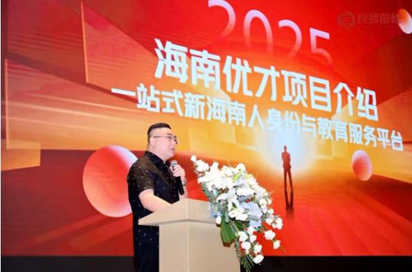 海南优才负责人周总则分享了海南自贸港在人才引进和教育政策方面的独特优势及项目内容,展示了为学子生涯发展铺就新道路的广阔前景。