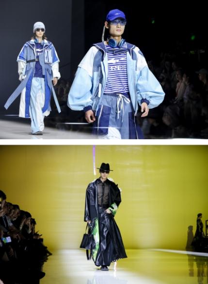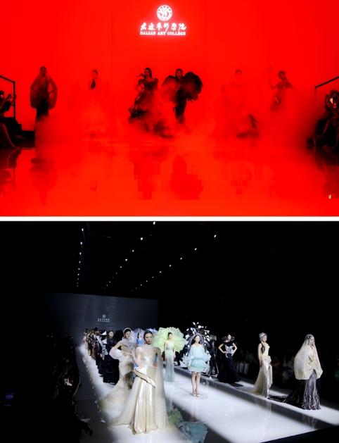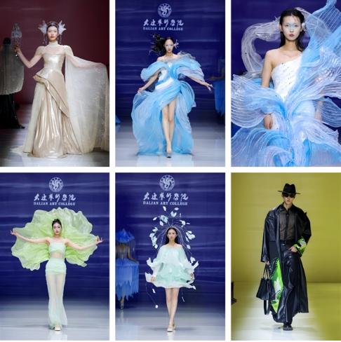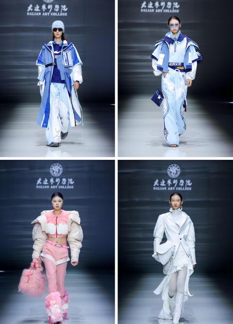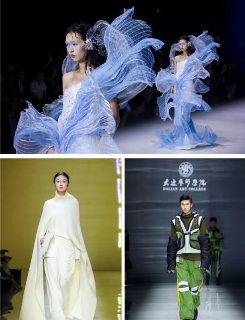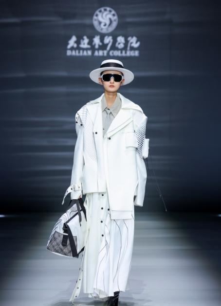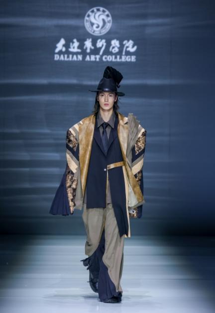 大连艺术学院服装学院此次派出的136名师生共参与完成了秀场视觉、服装表演、化妆造型、会场保障等工作,共发布了以女装、男装、针织、运动、礼服、创意等风格的26个系列86套服饰,设计师从材质、工艺、色彩、廓形等元素出发深入挖掘创意灵感,历经数月精心打磨,为观众带来服饰文化与前沿创新的视觉盛宴。
