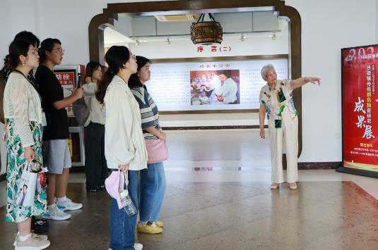 初抵景德镇邓希平颜色釉陶瓷艺术博物馆,空气中仿佛还萦绕着热空气的余温。材起非遗实践团的成员们刚站定,便见到了国家级非物质文化遗产代表性传承人、颜色釉领域泰斗邓希平老师——她身着素雅服饰,笑容温和,一句“欢迎大家前来”,她亲切的问候瞬间拉近了与大家的距离,也为这场非遗探索之旅注入了温暖的开场。
