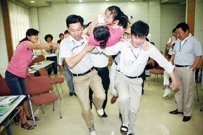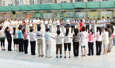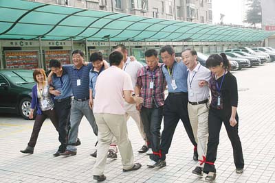 绑脚跑游戏,增强了员工的团结协作意识。 |