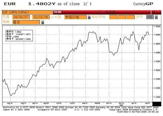 昨日欧元区公布数据显示,1月份制造业采购经理人指数经修正后为 52.8,略高于2007年12月份的52.6。而德国1月份制造业采购经理人指数增长至54.4,好于2007年12月份的53.6。