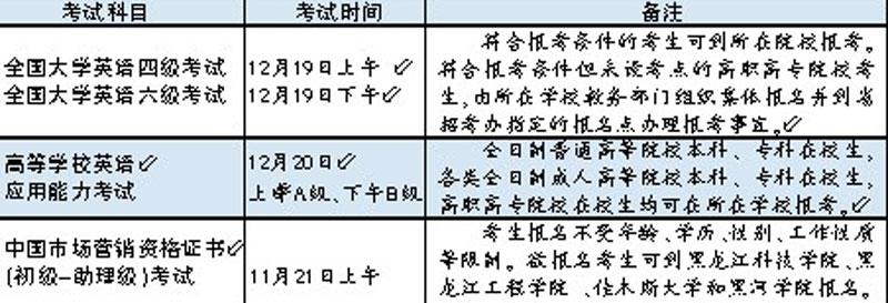 据悉,全国大学英语四六级考试(CET)、高等学校英语应用能力考试和中国市场营销资格证书考试即日起至9月20日开始报名。